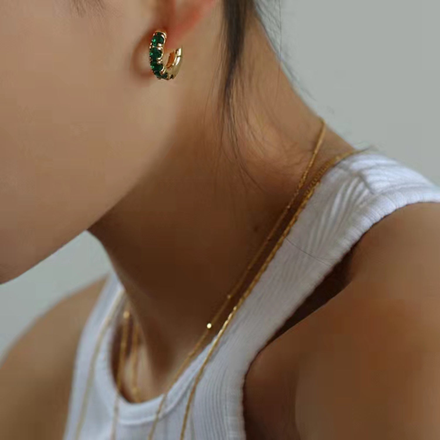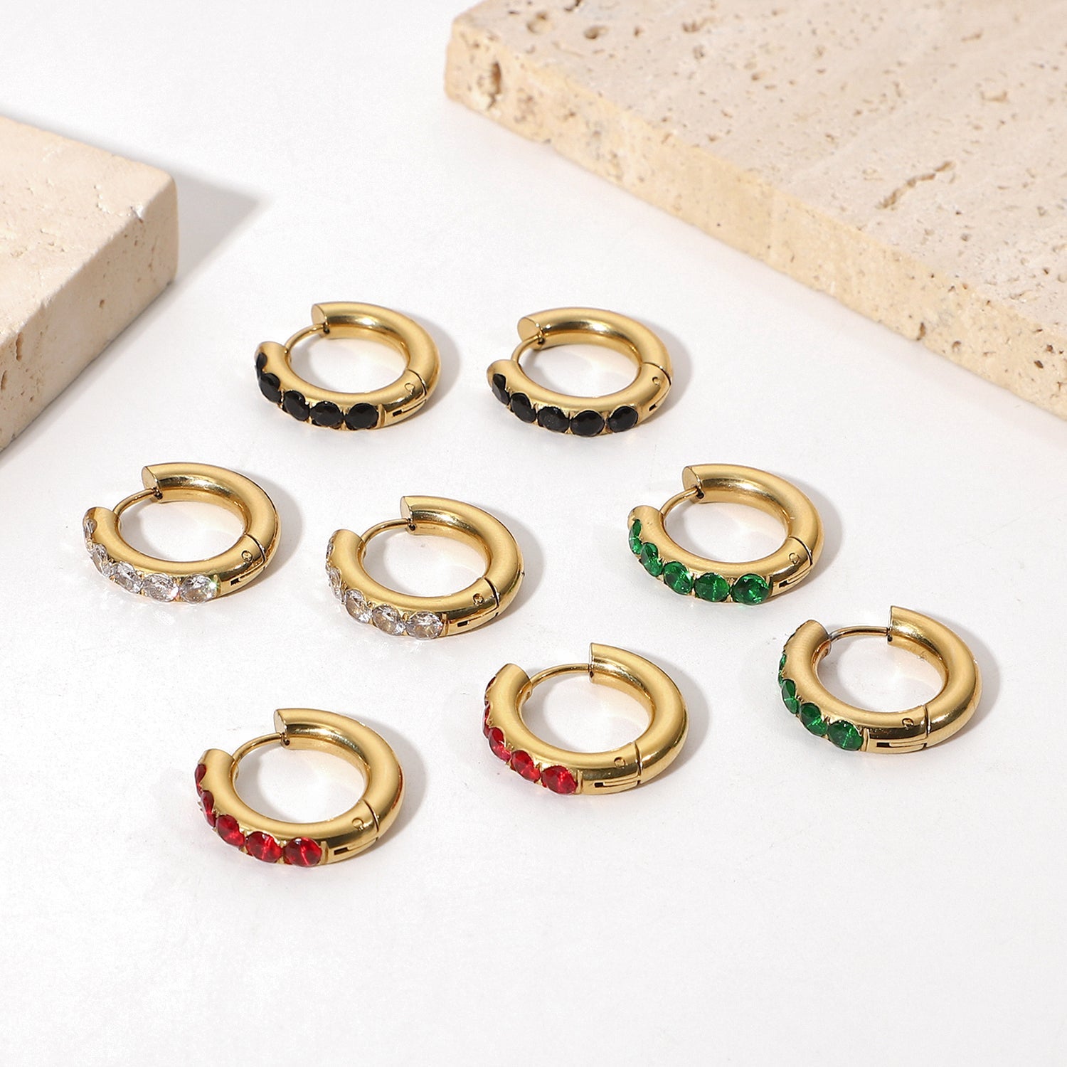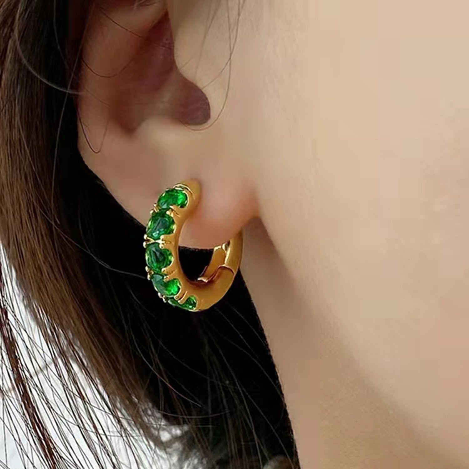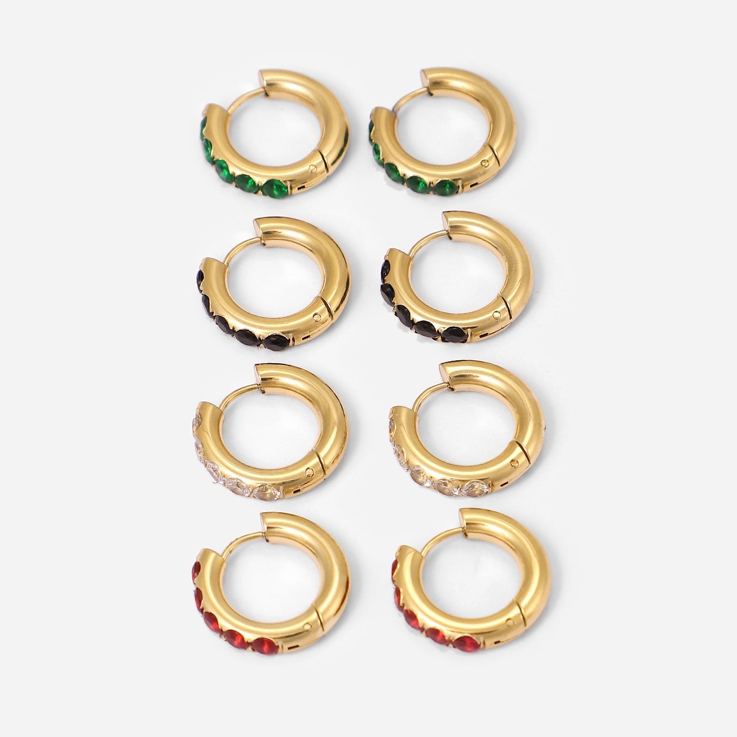 Pavé right this way with our stylish gold huggie hoops. These mini hoops come in different colors and are the pair you’re bound to love forever. Wear these studs alone or add them to a thoughtful ear stack for an eye-catching look.