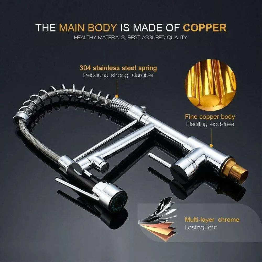 Chrome Brass Kitchen Faucet Pull Down Sprayer Sink Single Hole Deck Mount Mixer Tap