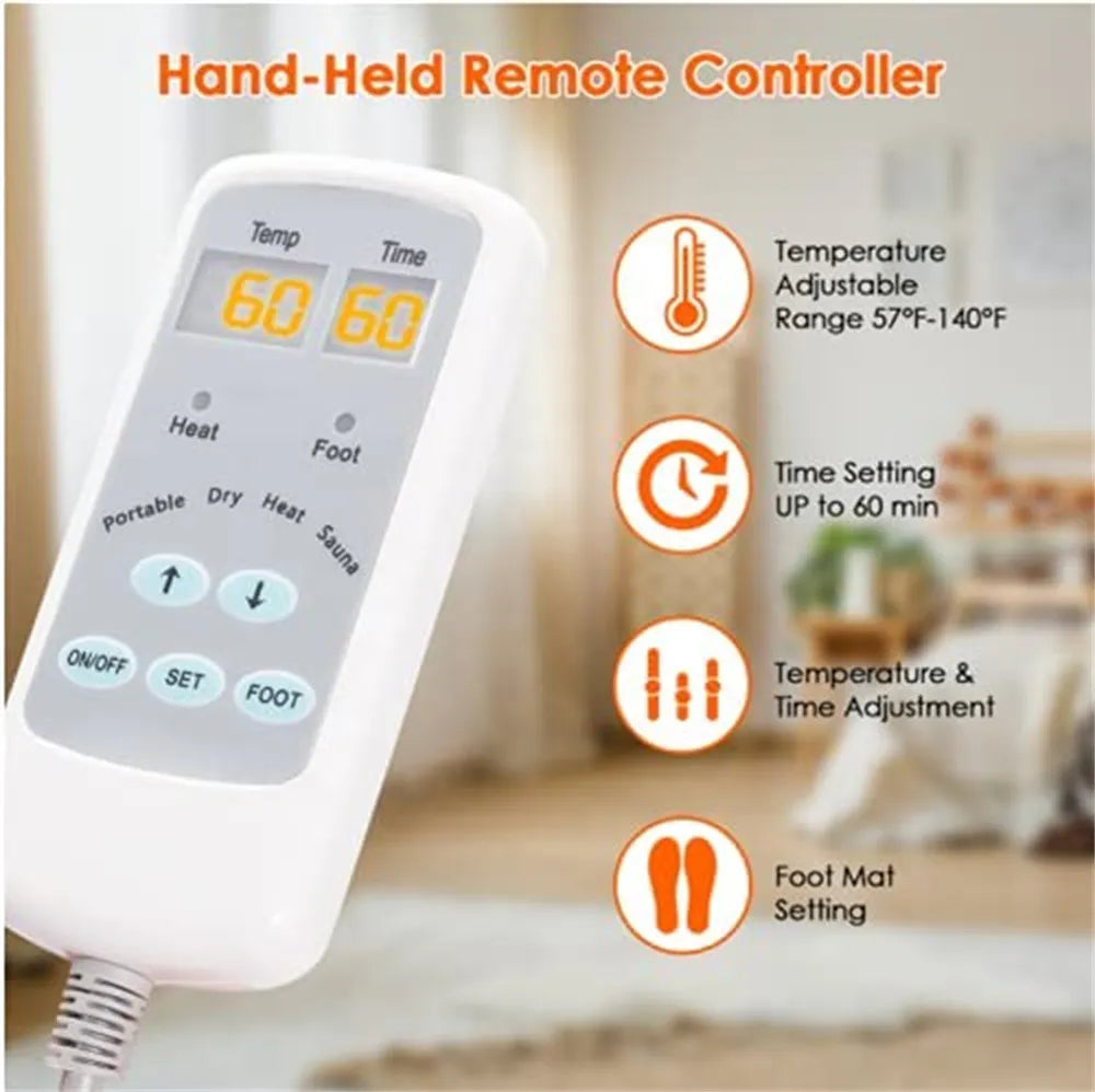 Take control of your relaxation journey with the built-in timer, allowing sessions of up to 60 minutes. The maximum temperature reached is 140°F (60°C), ensuring a safe and customizable sauna experience tailored to your preferences.